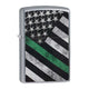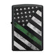 Featuring the Special Edition, Thin Green Line Warrior Lighter. This lighter utilizes Zippo's color imaging process to fashion a striking design on this matte black lighter. Show your support for our country's military with this exclusive model you can only find here. Comes packaged in a gift box. For optimal performance, fill with Zippo lighter fluid.